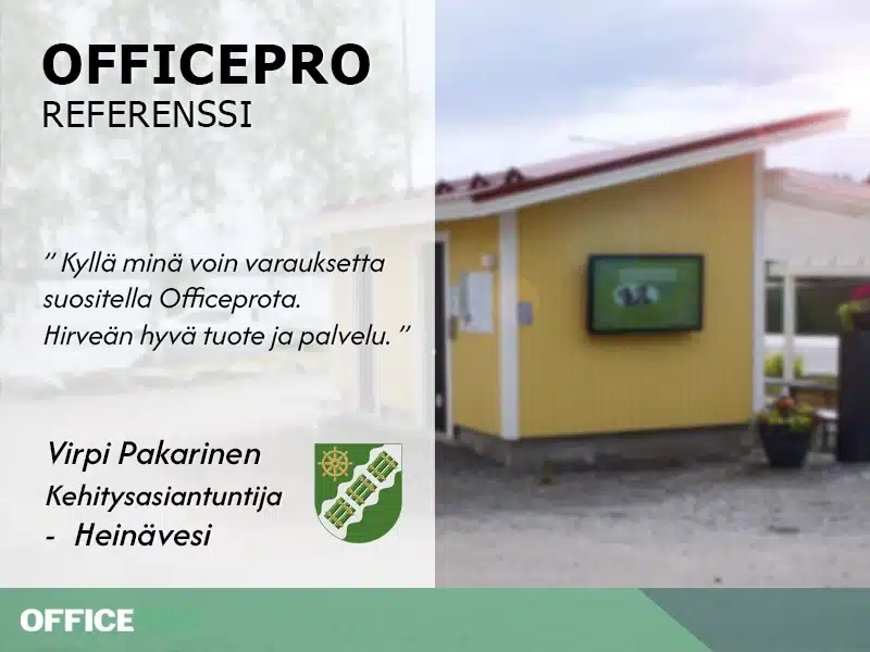 “Kyllä minä voin varauksetta suositella Officeprota. Hirveän hyvä tuote ja palvelu. Ja Kari oli kyllä niin aktiivinen, että välillä tuntui, että vähempikin olisi riittänyt – mutta hyvä niin