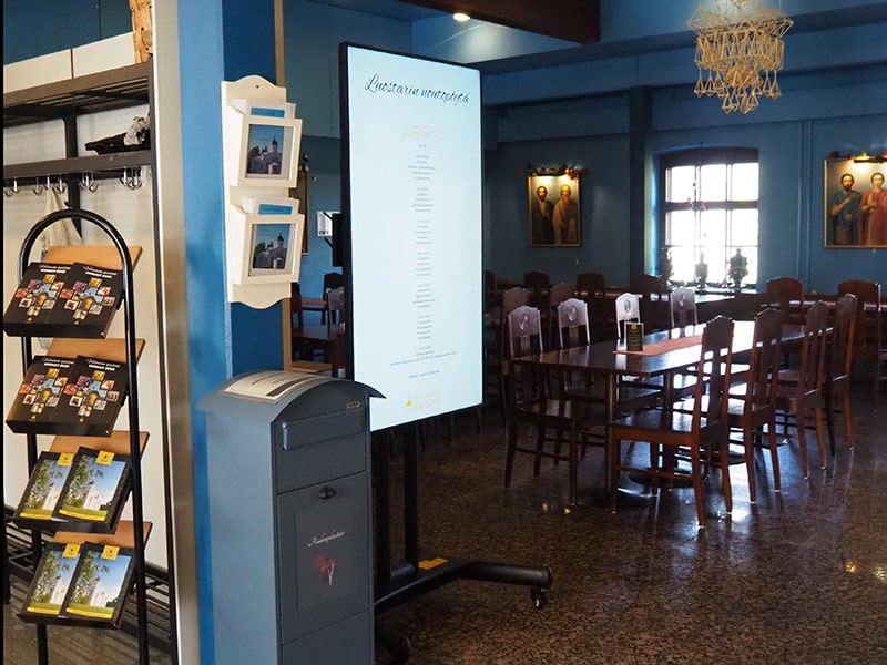 Miten infonäytöt tukevat luostarin hengellistä ja kulttuurista ilmapiirejä?